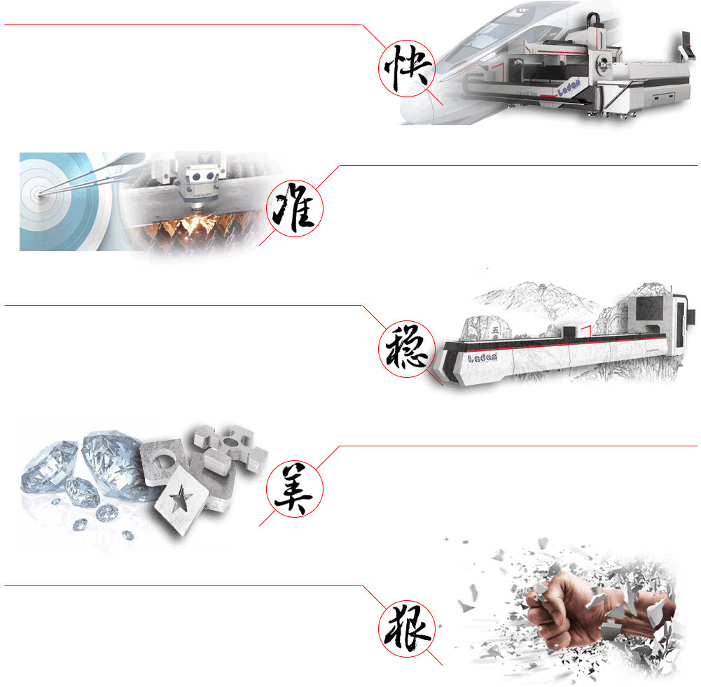 互換臺面光纖激光切割機(jī)(高效型) 板材切割:碳鋼板、不銹鋼板、鍍鋅板、電解板、硅鋼、錳鋼、鋁合金、黃紫銅板等多種金屬材料。廣泛應(yīng)用于:廚房電氣、鈑金機(jī)箱機(jī)柜、機(jī)械設(shè)備、電器設(shè)備、燈飾五金、廣告標(biāo)牌、汽車配件、展示器材、各種金屬制品、鈑金切割加工等行業(yè)。